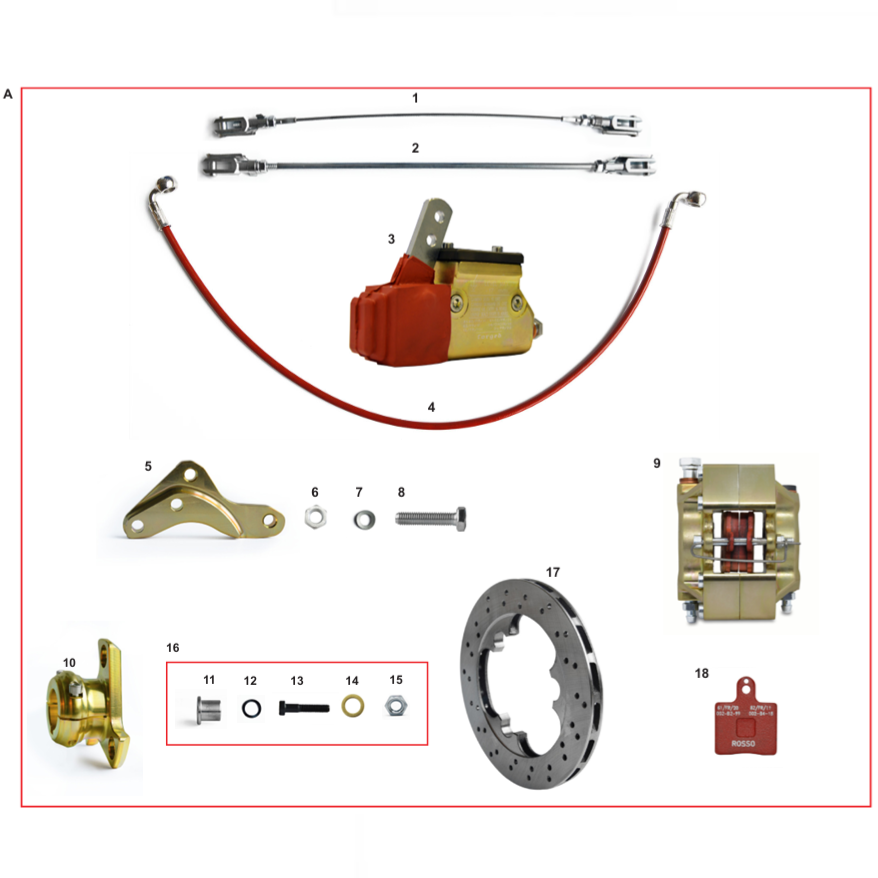 Brake system components for the CRG Mini cadet racing kart. Ideal for a variety of cadet racing karts, including the CKR, Zanardi, and Maranello racing cadet karts.