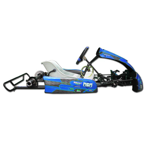 This chassis comes complete as a race ready kart, with seat, bodywork, sticker kit, and more. This kit does not include wheels.